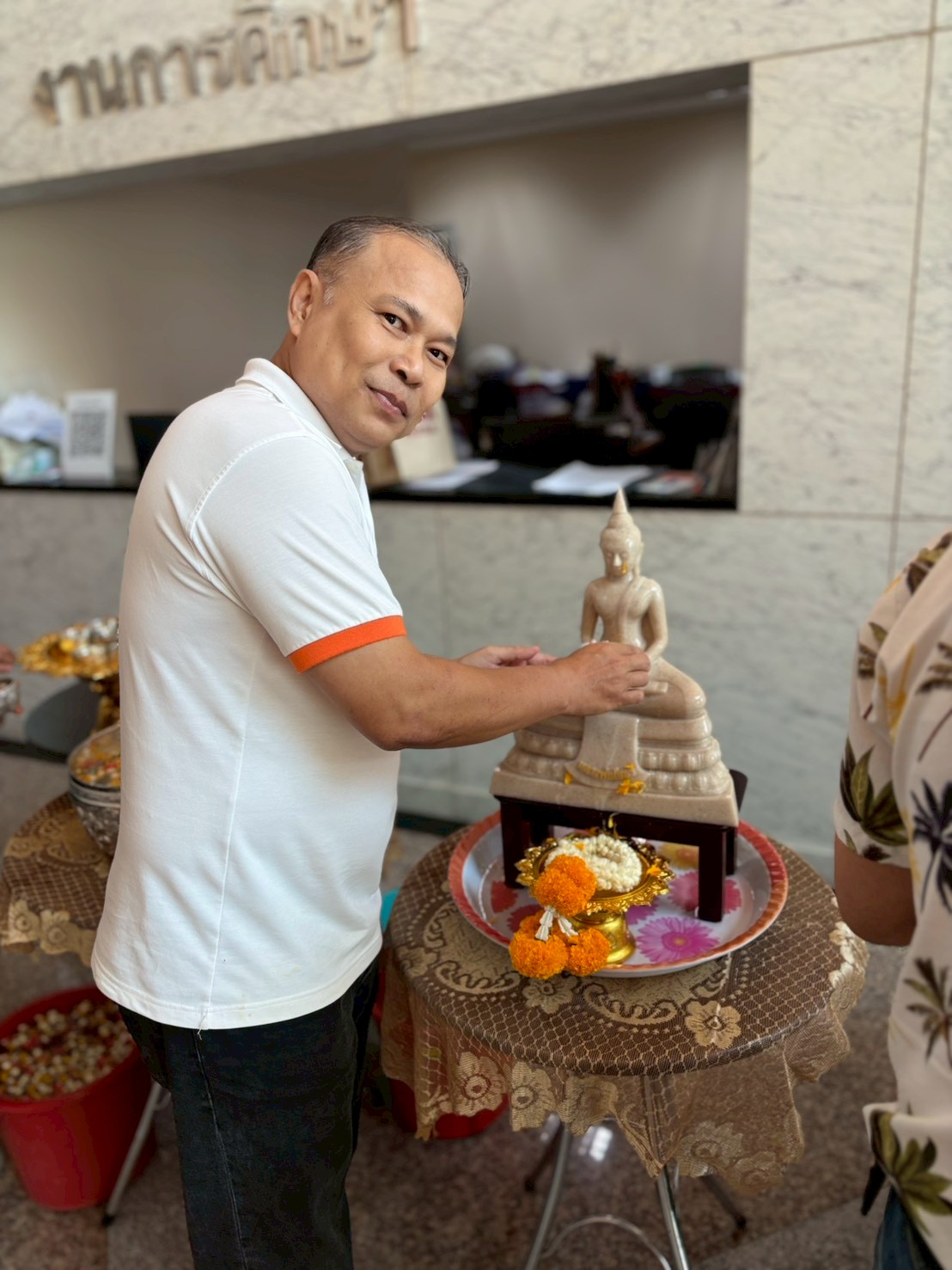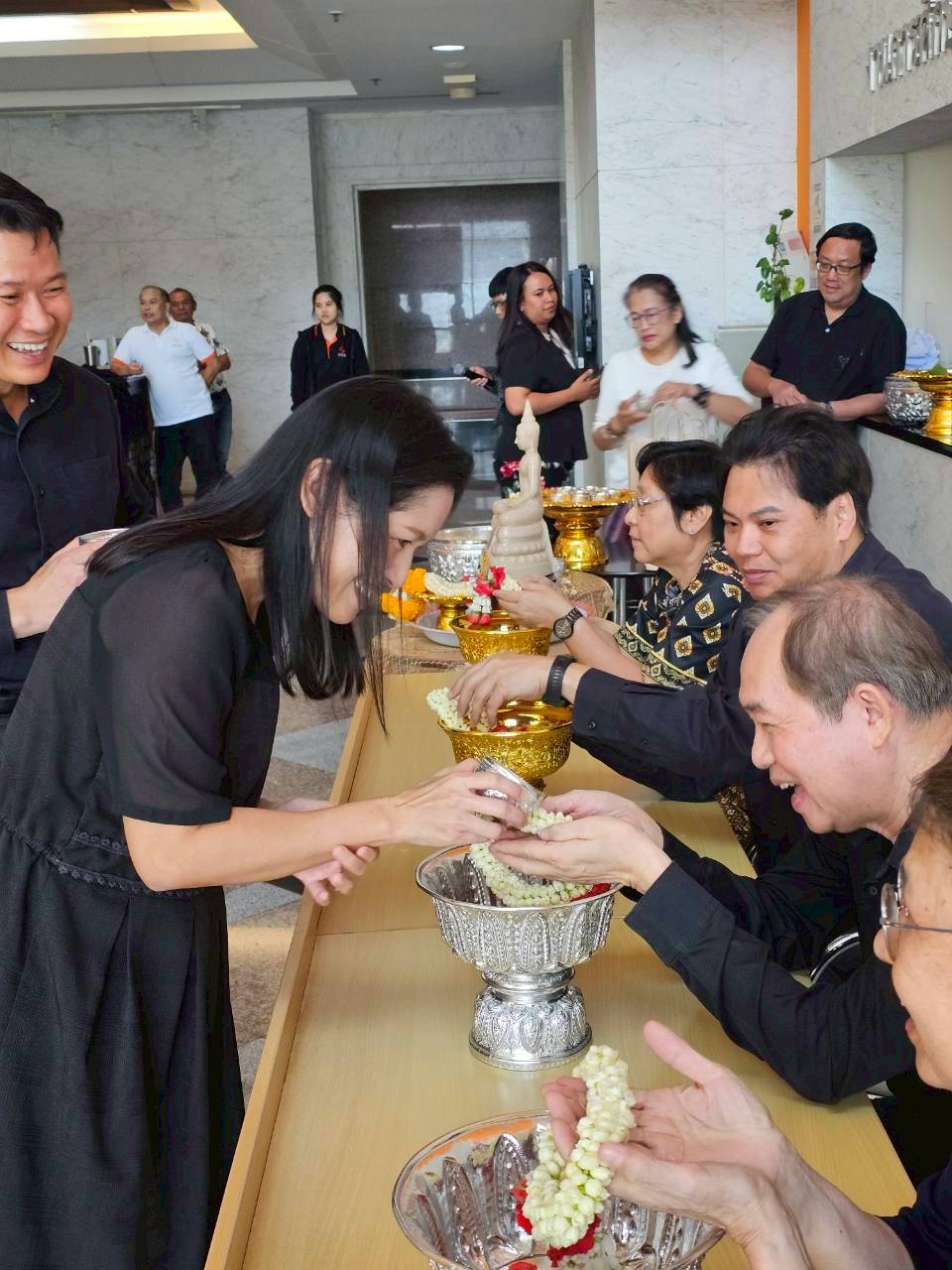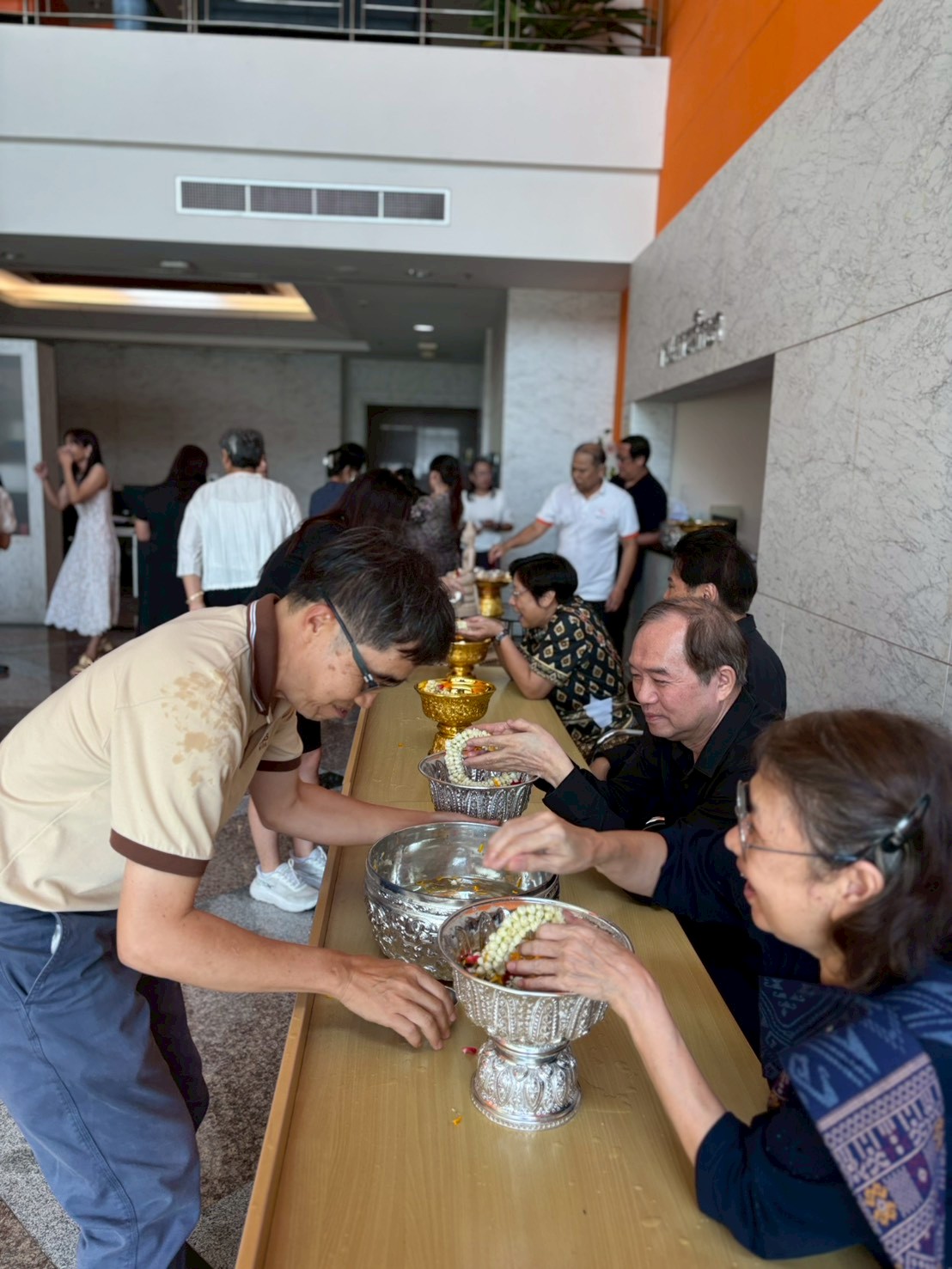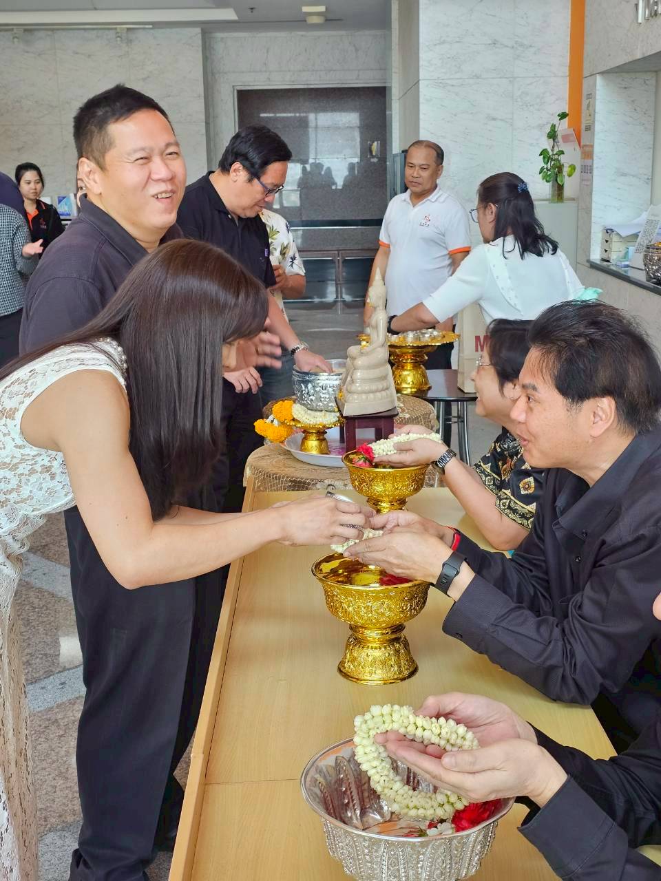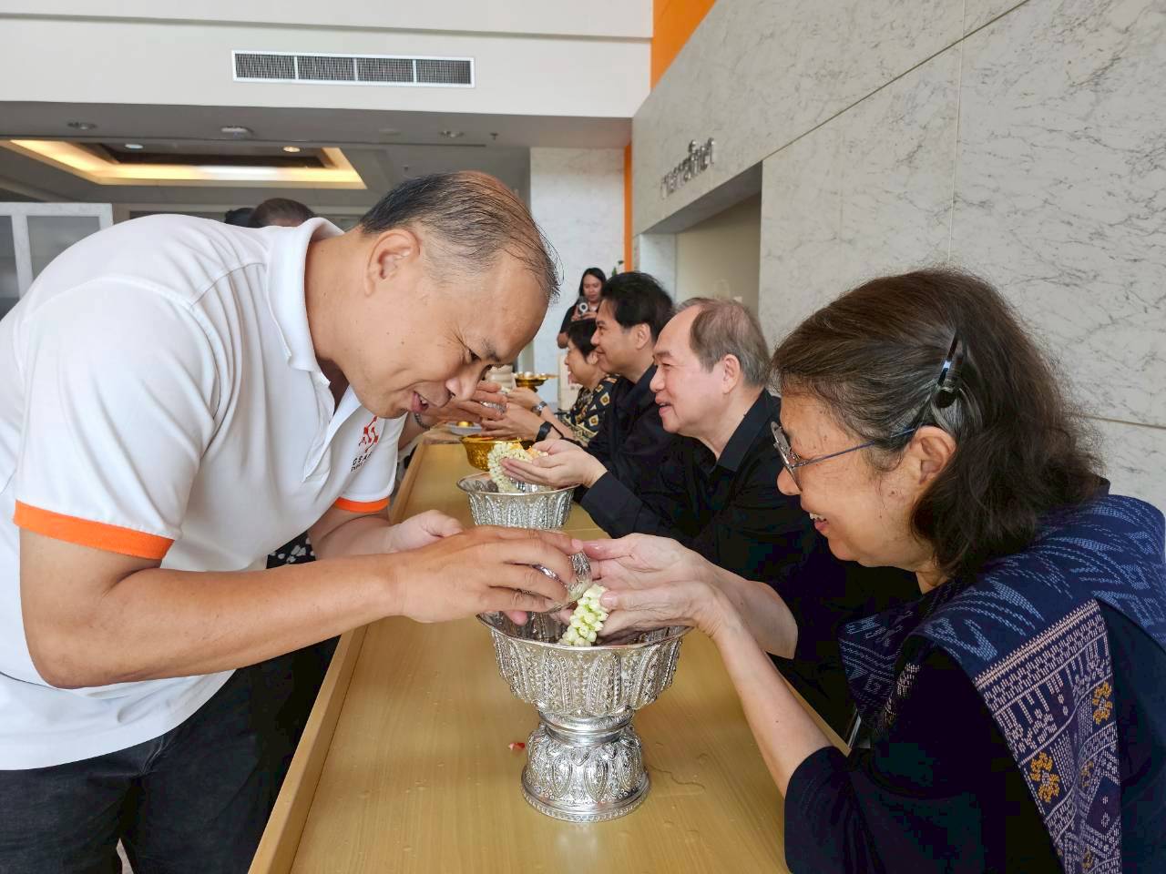 นำโดย ผู้ช่วยศาสตราจารย์ ดร.เอกรัฐ รัฐกาญจน์ รองคณบดีฝ่ายบริหาร คณะสถิติประยุกต์ เข้ารับการรดน้ำขอพรอาจารย์ผู้ใหญ่ ดังนี้