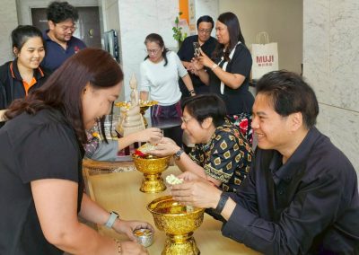 ทั้งนี้ อาจารย์ผู้ใหญ่ได้ให้พรแก่อาจารย์และเจ้าหน้าที่ทุกคน เพื่อเป็นขวัญกำลังใจในการปฎิบัติงานและเป็นสิริมงคลต้อนรับปีใหม่ไทยอีกด้วย